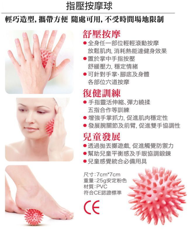 包含柔軟球面/堅硬球面,可輕鬆按摩全身 中華民國專利字號088637 符合CE認證標準
