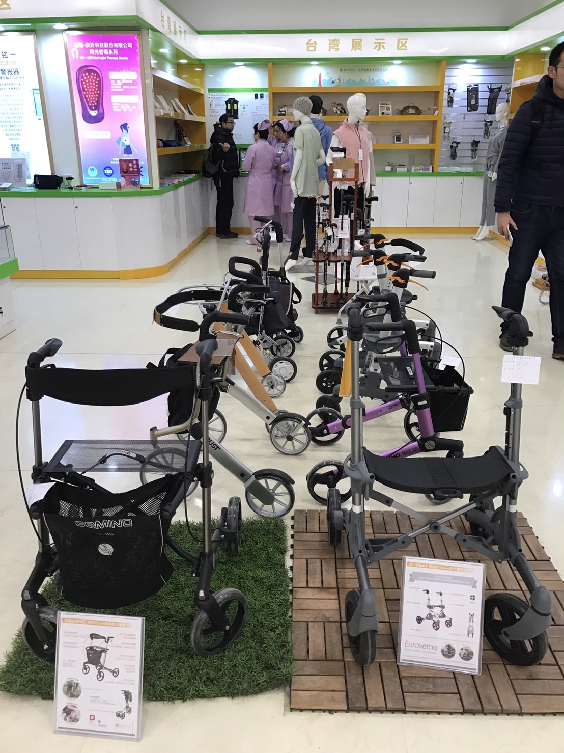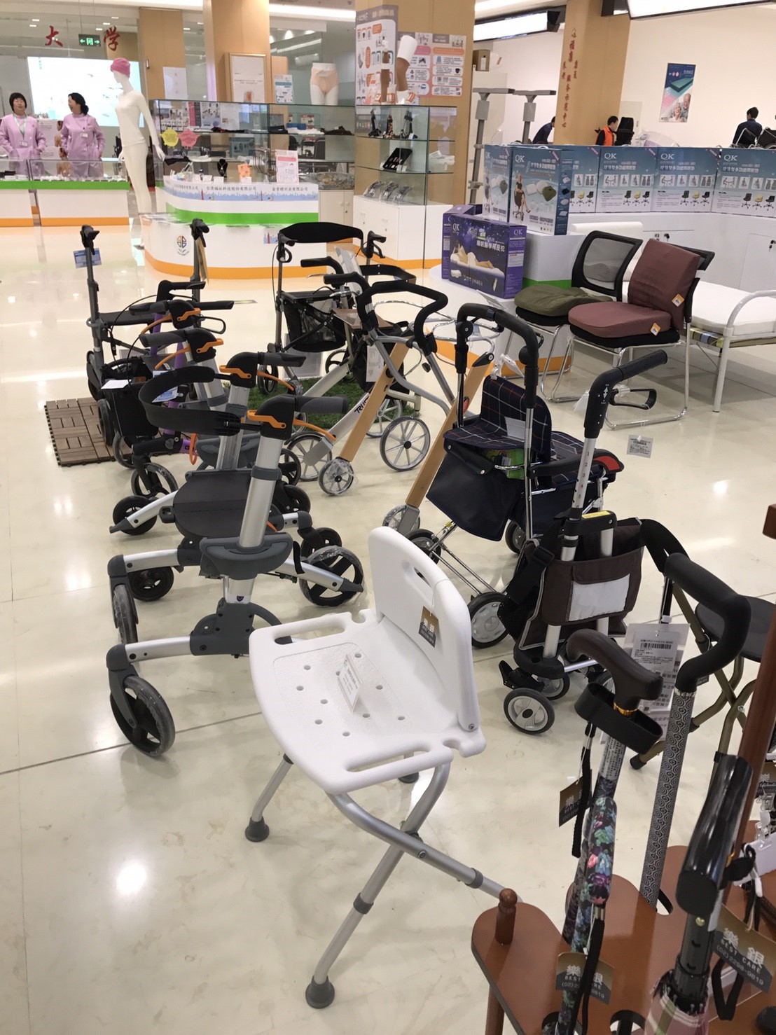 櫃位上也展示了許多助行車,不論是逛街還是出門買菜,都是您最好的小幫手!!