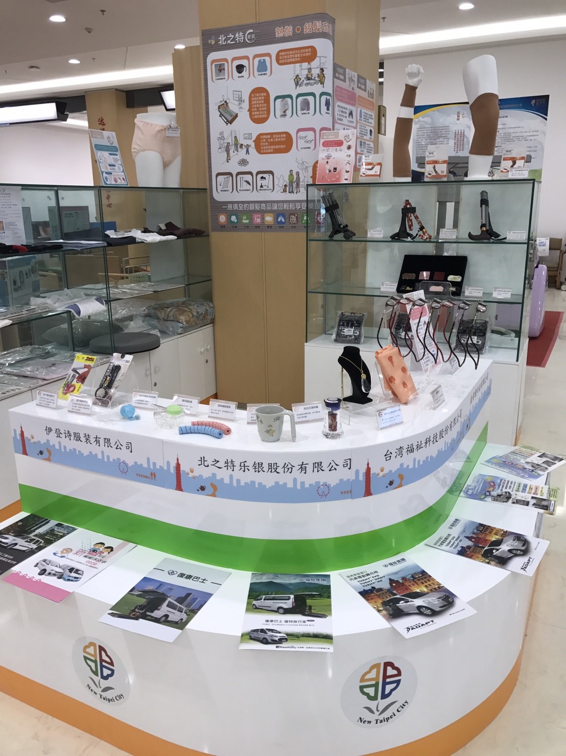 在眾多銀髮精品區中,北之特樂銀的銀髮商品最為亮眼,無論是拐杖類、助行類、老花眼鏡類