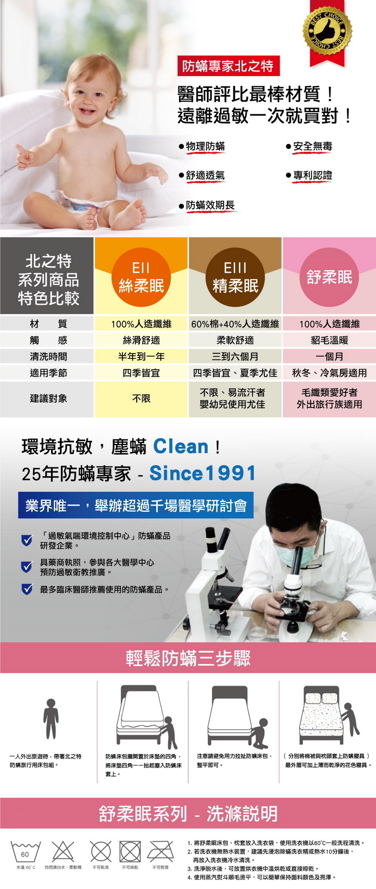 特製超細纖維緊密織布 防螨百分百 耐洗耐用