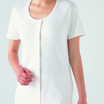 特色:圓形粘扣、穿脫方便,特殊抑制細菌·除臭處理的舒適貼身襯衣。可耐洗滌。 顏色:白色・米色 材質:綿100%