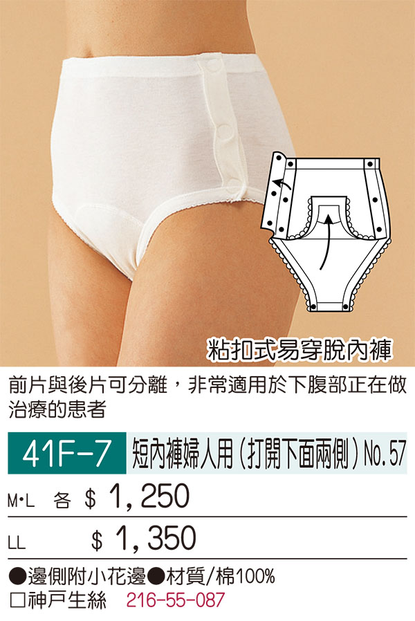 特色:隱形黏貼方式,操作方便,也方便看護者替臥躺者穿脫,中間可夾尿布。具有吸汗保暖。 材質:100% 綿,60單系兩面編織而成高級綿。