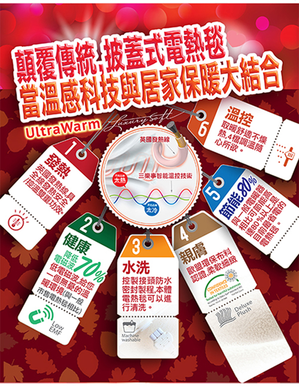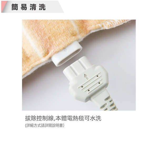 創新-特殊設計及分離式電線, 電熱毯本體(控製器及連接電線除外)可水洗